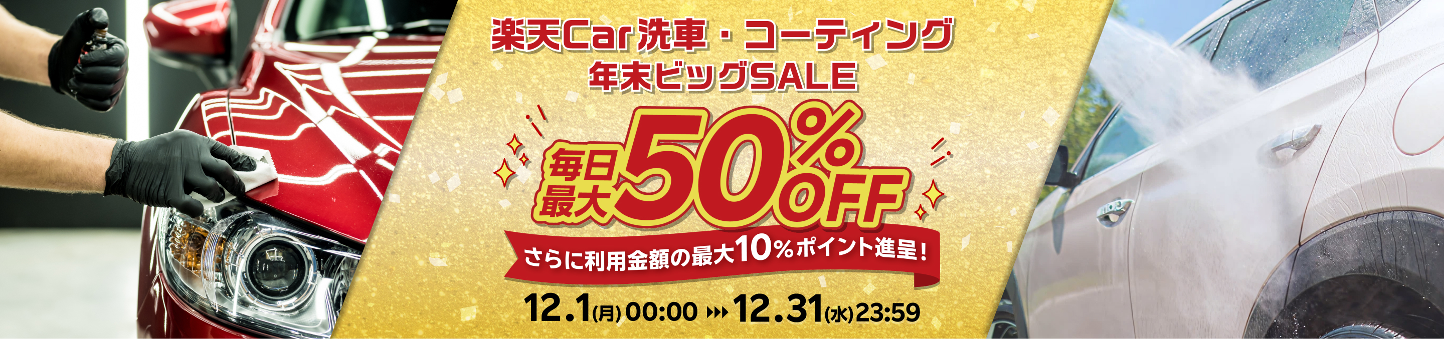 エントリー期間:2025年12月1日(月)00:00~2025年12月31日(水)23:59まで②楽天Car洗車・コーティングから対象店舗に予約・実施