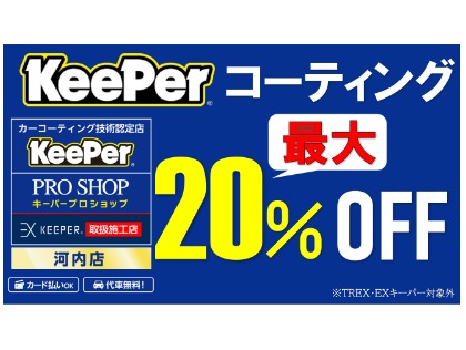 実施金額の1%ポイント貯まる 代車あり(対象メニューは店舗にご確認ください)キーパーコーティング技術1級資格取得者在籍クレジットカード払いOK |