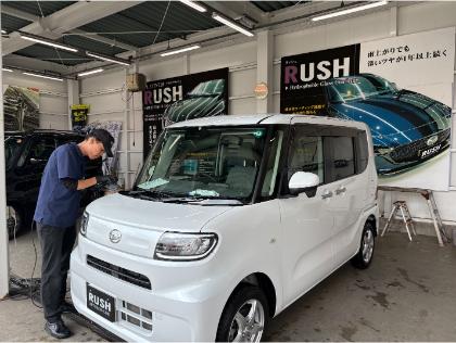 お待ちの時間で施工可能!滑水性ボディーガラスコーティング!小さな水玉でも滑り落ちるほどの滑水力。