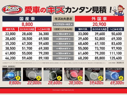 - 税抜き¥30,000円以上の傷の場合15%OFF! 代車無料貸し出し。