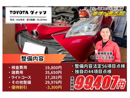 トヨタ ヴィッツ(2019年式、5万5千~6万km)の車検実績
