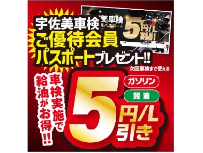 車検実施で特別優待パスポートプレゼント!!ガソリン5円引きや、お得なクーポンが満載です。
