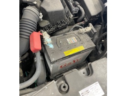 点検時にバッテリーの消耗がひどく、プラス端子も粉まみれになっていた為、