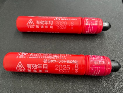 そんな発炎筒には、実は有効期限があることをご存じでしょうか??発煙筒は、4年という有効期限があります。製造年月日と有効年月が写真のように表記されています。