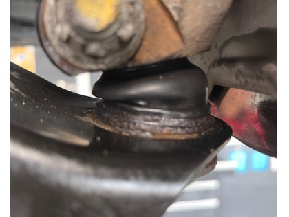 点検の結果、ロアボールジョイントブーツに亀裂が入りグリスが漏れていた為、交換させていただきました。