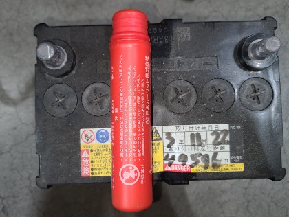 エンジンオイル交換、オイルエレメント交換、発煙筒、バッテリー交換となります。