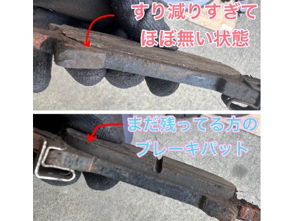 見てわかると思いますが、かなりすり減ってパットはほぼなくなっており