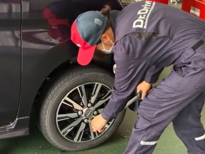 車検当日もしっかり点検をし、タイヤ脱着後、増し締めをし、空気圧調整をして終了になります!